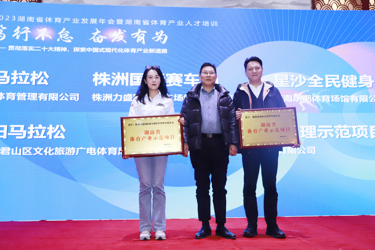 15日上午,2023年湖南省產業發展年會暨湖南省體育產業人才培訓在長沙華天大酒店召開。我司運營的IP項目-湘江馬拉松賽榮獲2023湖南省體育產業示范項目并獲得授牌。
